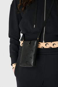 - Snap button - Sgnature moon jacquard lining - Marine Serre leather patch - 9 x 16 cm - Shoulder Strap 53 cm Materials Moon canvas black The moon canvas is a signature Marine Serre material featuring the iconic all-over moon print on durable canvas 63% PU, 23% PL, 14% CO - SECONDARY FABRIC: 100% COS - LINING 1: 100% PL
