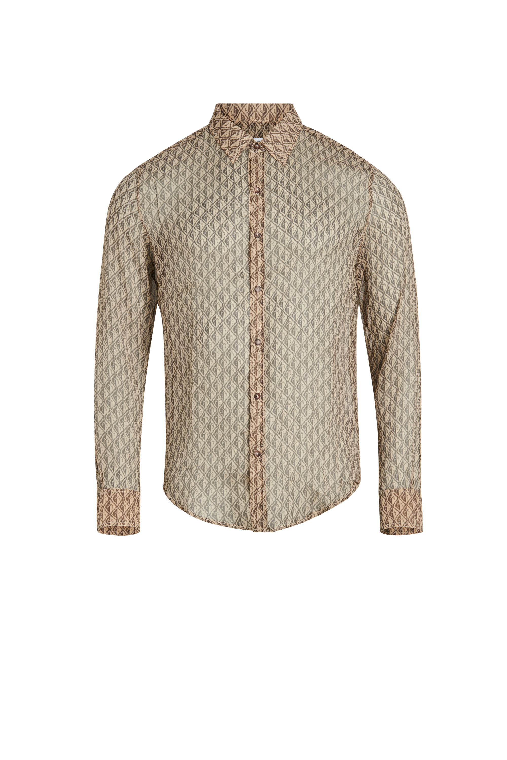 Crafted from 100% high-quality silk, this button-up shirt features a crepon fabric, adding a touch of texture to its elegant feel. Materials Moon Diamant silk crepon This lightweight and textured fabric offers a soft and flowing drape, perfect for creating graceful designs. It is adorned with moons shaped in diamonds, one of the striking motifs from the MARINE SERRE collections. 100% Silk