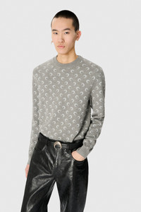 Classic regular length crewneck sweater with long sleeves Product Detail - Ribbed neckline - Ribbed sleeves and bottom finishings - Jacquard stitch with all over moon signature artwork - Jacquard moon logo Composition and Traceability Product details page relating to environmental qualities or characteristics MTK004A CKNI0530 GR60 MISTY GREY Composition: 50% Virgin Wool , 50% Viscose Traceability: Weaving, Dyeing, Manufacturing: Italy