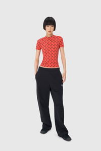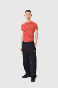 - Signature Moon printed all over - Reinforced neckline - Raw edge cuffs and hem Materials JERSEY ALL OVER MOON BLACK ON RED The All Over Moon print is the banner of the House, it represents the house’s virtues and vision of Futurewear, ever present since the very beginning of the House for RADICAL CALL FOR LOVE. Indeed, what is perhaps the House’s most popular line holds its values at heart with a jersey composed entirely of recycled material. 88% Polyamide (GRS Certified) - Recycled, 12% Elastane