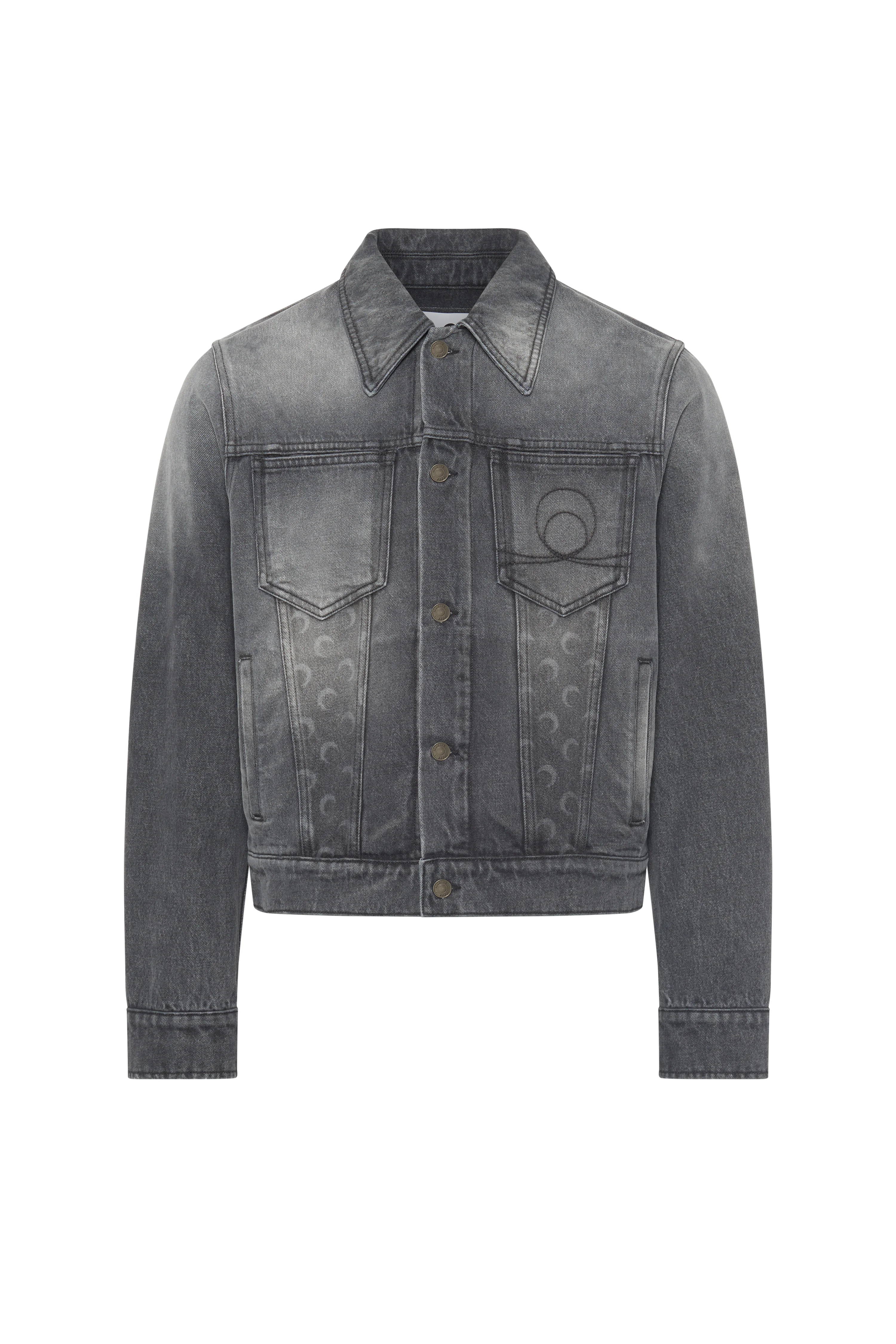 - Buttoned front - Two chest pockets - Welt side pockets - Buttoned sleeve cuffs - Adjustable waist - Signature moon laser printed all over on front panels - Marine Serre leather patch Materials Moon Laser Denim Dark Grey Made from gots-certified organic cotton canvas with a stonewashed dark grey. Laser-printed with marine serre’s signature moon motif, varying from full prints to subtle accents on pockets and waistbands 100% COTTON