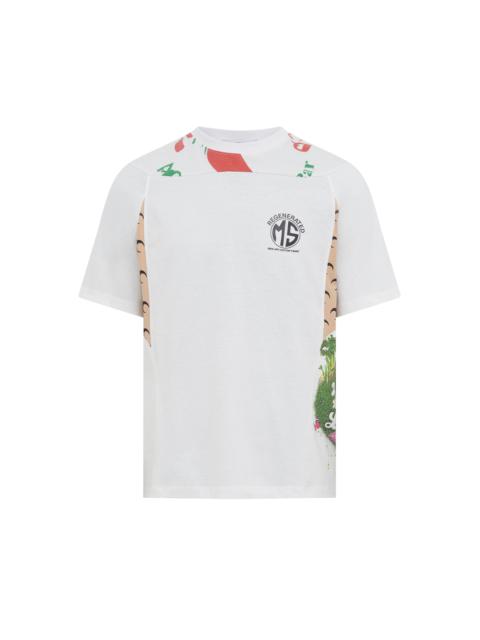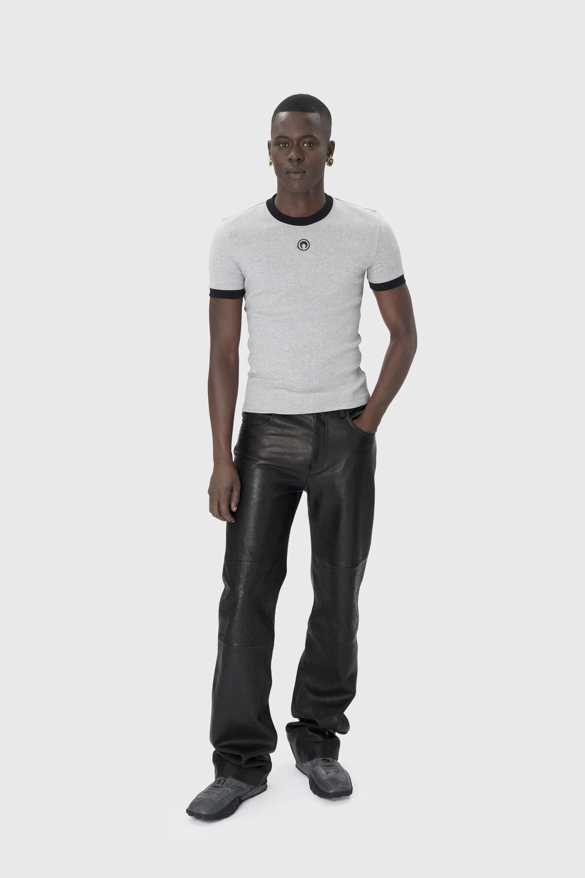 - Ribbed neckline and cuffs - Contrasted finishings - Moon logo embroidered under neck in front - Branded label woven under neck in back Materials Moon Logo Jersey All the cotton Marine Serre sources for Borderline is GOTS-certified — this world-leading textile processing standard chiming with the house’s own well-known commitment to protecting the planet. In terms of the silhouettes across these ranges, we wanted to offer a wide range of everyday styles that are directly inspired by the world of sportswear. Our Moon Logo Jersey lines come in a range of traditional colours (white, black and grey, but in most cases lilac too) spun out across t-shirts, tanks and dresses, as well as underwear. These garments are finished in the classic way familiar from sportwear garments, with our Moon Logo in raised embroidery just below the neckline. Some of the Recycled Cotton Jerseys (lilac and grey) feature our MS Sport logo — a print moon with Marine Serre embroidered above, and we have also expanded our palette with seasonal colours such as red and blue, bearing a Gradient All Over Moon print. 100% Organic Cotton (GOTS certified)
