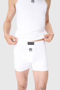 Medium-waisted boxer briefs with a regular fit Product Detail - Stretch fabric - Elastic waistband - Moon logo embroidered under waistband in front - Branded label woven on waistband in front Composition and Traceability Product details page relating to environmental qualities or characteristics MUW044A CJER0012 WH10 WHITE Composition: 95% Cotton, 5% Elastane Traceability: Weaving, Dyeing, Manufacturing: Turkey