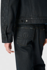 Medium-waisted straight regular length denim pants Product Detail - Zipper and button - Five pockets - Belt loops - Black coatted all over with faded moon on bottom hem - Cotton twill on front pockets - Marine serre leather patch Composition and Traceability Product details page relating to environmental qualities or characteristics MPA066B_CDEN0007_BK99_BLACK Composition: 100 % COTTON Traceability: Weaving/Dyeing/Manufacturing: Italy