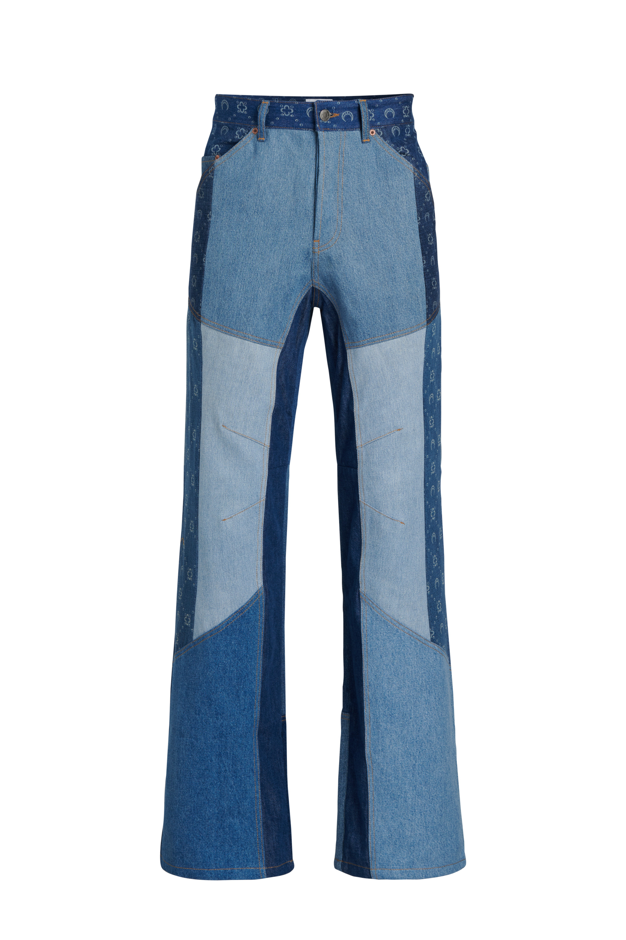 Featuring a loose fit, these unique Moonogram denim straight-leg trousers are regenerated from 8 jeans. The pair features a regular waist, darts in the knees and dynamic cuts throughout the legs. The Moonogram print that can be found in the front part of the trousers and the moon embroidery topstitch on the back make these trousers an instantly recognizable MARINE SERRE’s item. Materials Moonogram Blue Denim Marine Serre is a storyteller, disassembling and reassembling this popular material exclusively from denim legs, 100% cotton, to create one of a kind regenerated pieces, each of them revealing new unique stories. Denim is a Marine Serre’s core material that comes in shades of blue, laser printed with the iconic crescent moon. 100% Cotton