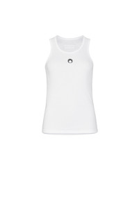 In a flattering fitting cut, this tank top is crafted from stretch organic cotton. It features a round neck, a sleeveless design and a straight hem. This is an instantly recognizable MARINE SERRE’s item thanks to the moon embroidery in the chest. Materials White Organic Cotton Marine Serre’s Borderline groups all the essential layering pieces synonymous with the brand. Through a body-conscious approach, these accessible pieces sheathe the body in the shape of second skins or casual t-shirt archetypes. 100% Organic Cotton