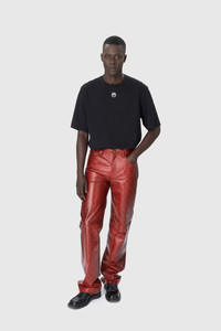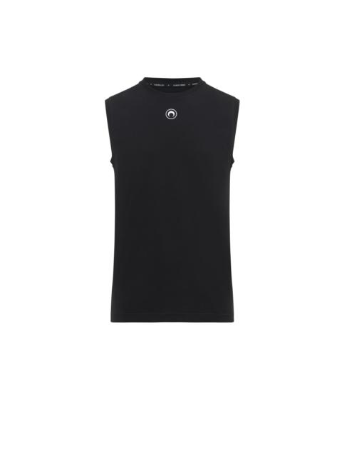 - Ribbed crewneck collar - Cover stitched hem - Contrasted white circle Moon logo embroidery placed below the front collar in center - MARINE SERRE Borderline label on the upper back Materials Black Cotton 100% Cotton