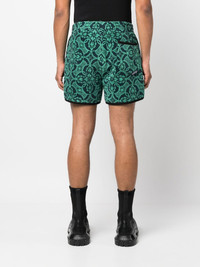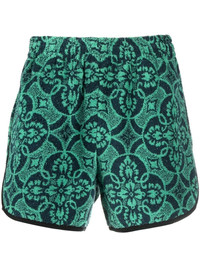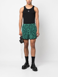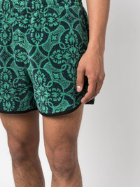 Oriental Towels track shorts Made from cotton and fitted with a comfortable elasticated waistband, these track shorts are rendered in Marine Serre's bright green Oriental Towels print, reflecting the brand's penchant for eye-catching motifs. Made in Italy Composition Cotton 100% SIZE & FIT Model measurements Height 6 ft 2 in(1.88 m) Bust/Chest 36.61 in(93 cm) Hips 37.79 in(96 cm) Waist 28.74 in(73 cm) FittingInformation This piece fits true to size. We recommend you get your regular size Regular fit Made with a mid-weight non-stretch fabric Washing instructions Machine Wash