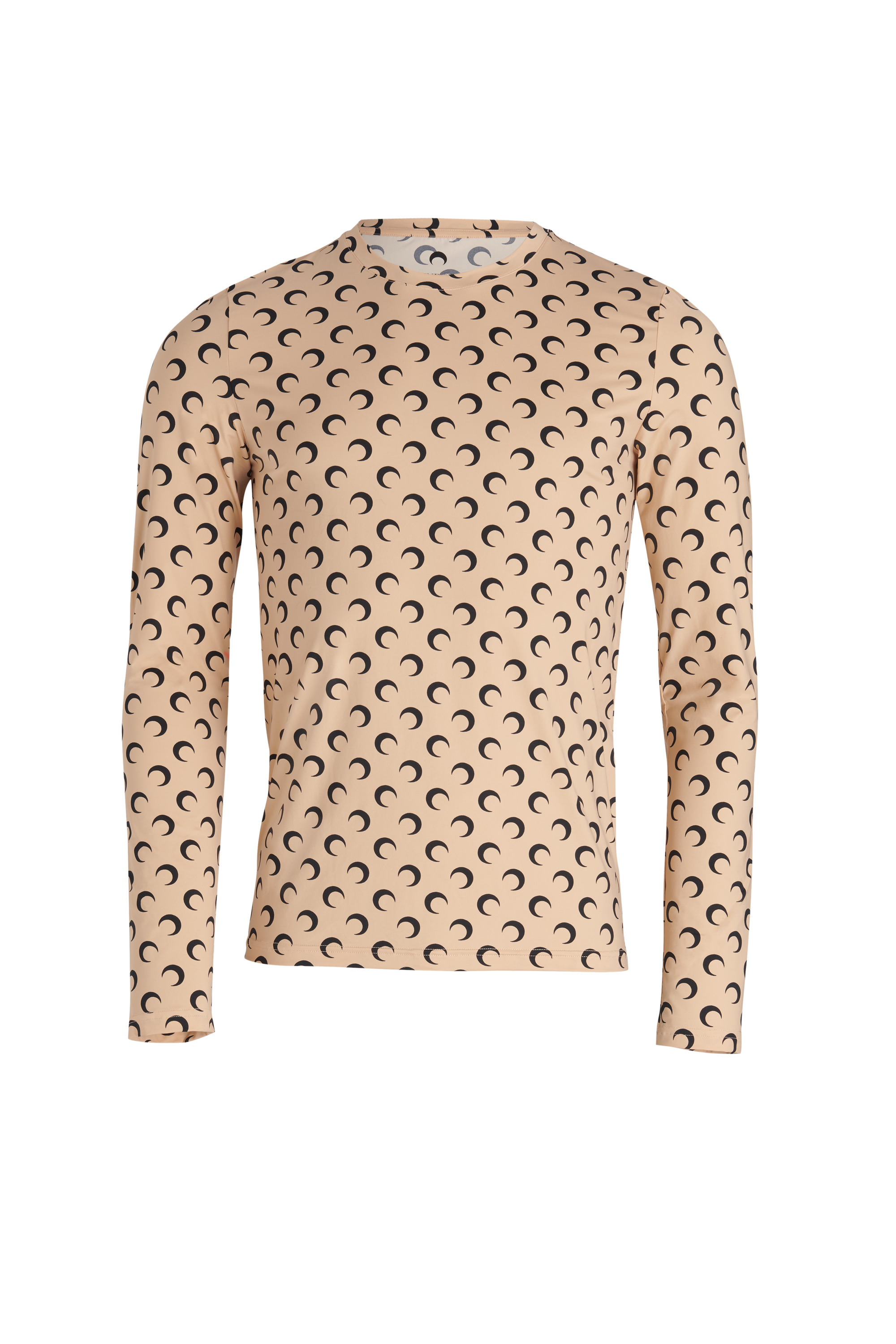 Reimagined in a larger fit for men, the unique moon top remains a key piece in the Marine Serre wardrobe. Materials All Over Moon Jersey Tan Marine Serre’s Borderline groups all the essential layering pieces synonymous with the brand. Through a body-conscious approach, these accessible pieces sheathe the body in the shape of second skins or casual t-shirt archetypes. 88% Recycled Polyamide, 12% Recycled Elastane