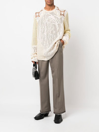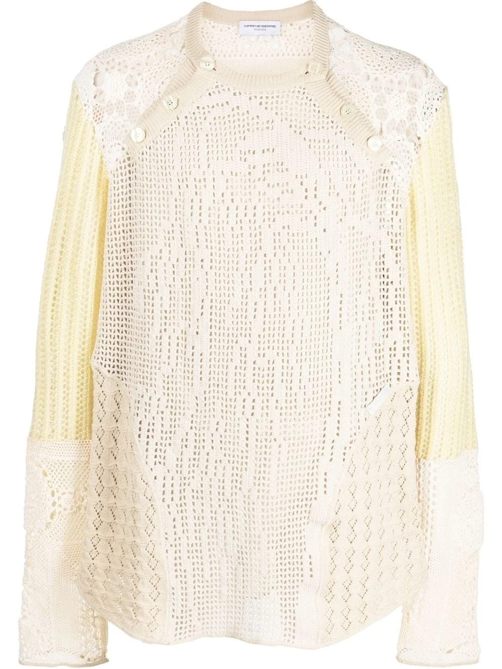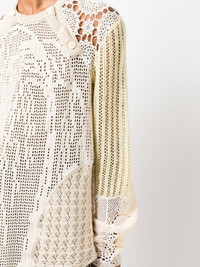 regenerated crochet raglan jumper Crafted from cotton, this Marine Serre top is elevated by a futuristic panelled crochet construction, offering a different look from every angle. Highlights - Cloud cream - Cotton - Crochet knit - Round neck - Long sleeves - This product is crafted from upcycled materials so the one you receive will differ from the item pictured. Made in Italy Composition Cotton 100% SIZE & FIT Model measurements Height 6 ft 2 in(1.89 m) Bust/Chest 35.03 in(89 cm) Hips 38.18 in(97 cm) Waist 29.92 in(76 cm) FittingInformation This piece fits true to size. We recommend you get your regular size Cut for a loose fit Made with a mid-weight fabric Washing instructions Dry Clean Only