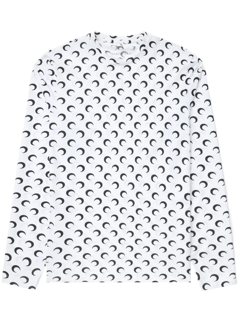 Regenerated moon-print long-sleeve T-shirt Highlights - White - Stretch-design - Crescent moon print - Round neck - Long sleeves - Straight hem Imported Composition Polyamide 88%, Elastane 12% Washing instructions Read Manufacturer Guidelines