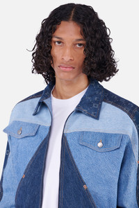 Regenerated from 9 jeans, this unique Moonogram denim working jacket showcases a straight-point collar, a front zip fastening, long sleeves and an elasticated hem. Featuring multiple pockets, this jacket is an instantly recognizable MARINE SERRE’s item thanks to the Moonogram laser print on the shoulders and sleeves. Materials Moonogram Blue Denim Marine Serre is a storyteller, disassembling and reassembling this popular material exclusively from denim legs, 100% cotton, to create one of a kind regenerated pieces, each of them revealing new unique stories. Denim is a Marine Serre’s core material that comes in shades of blue, laser printed with the iconic crescent moon. 100% Cotton