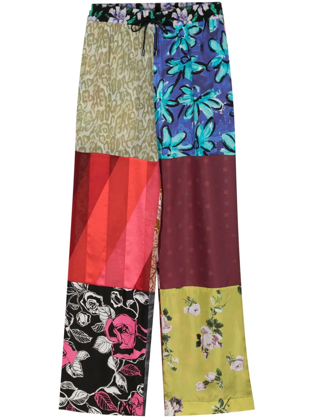 Regenerated silk trousers Highlights - Blue/multicolour - Silk - Colour-block panelled design - Floral print - Check print - Animal print - Mid-rise - Elasticated drawstring waistband - Wide leg - Two side slit pockets - When buying this unisex item, keep in mind that it is graded in standard men's sizing. Made in France Composition Silk 100% Washing instructions Dry Clean Only