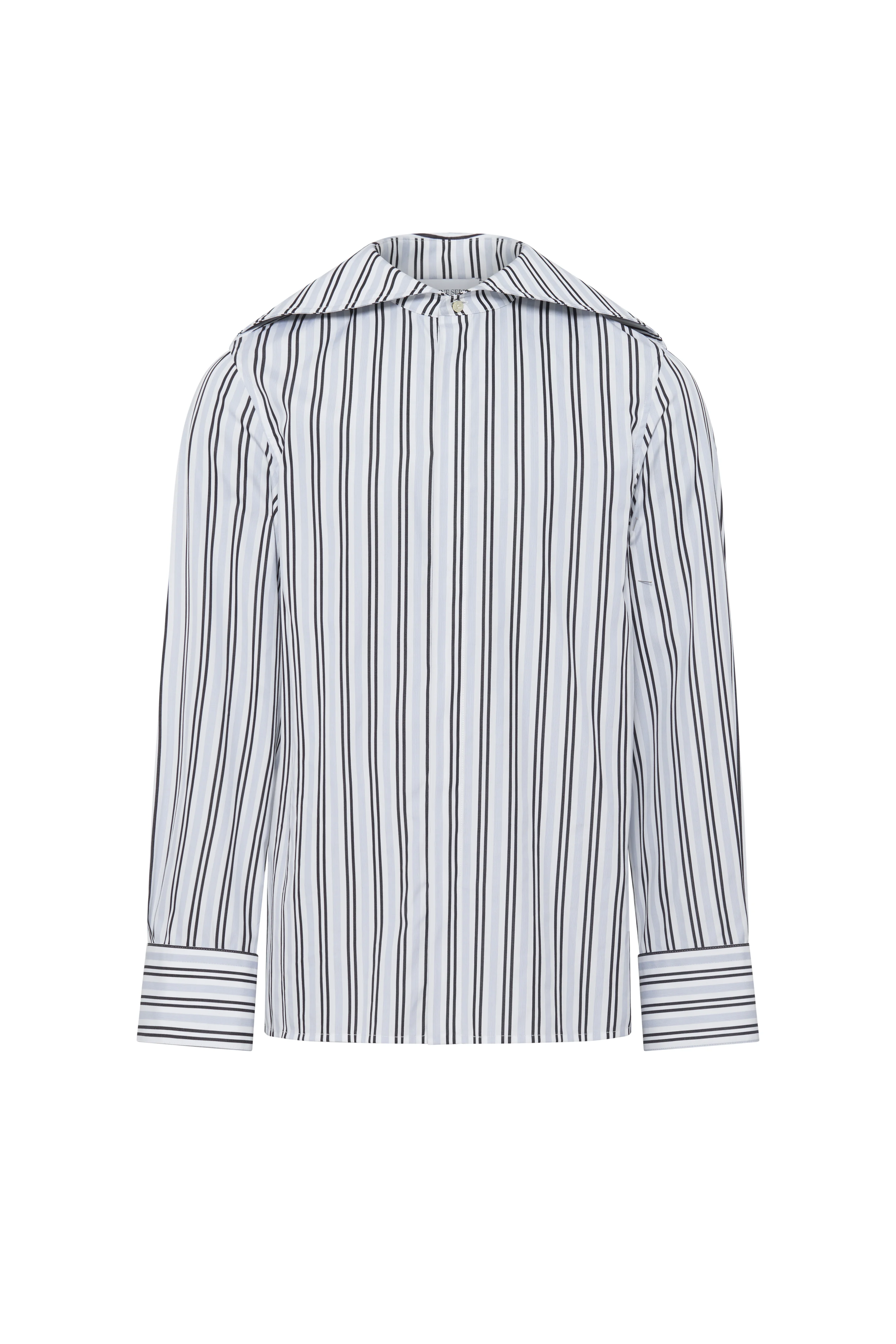 - Hidden buttons - Set-in sleeve - Double button cuffs - Woven logo label Materials Regenerated Striped Poplin The well-established Regenerated Household Linen line takes everyday staples like sheets, tablecloths, place mats and pillowcases and offers them an extraordinary new life. White embroidered garments showcase a fast-fading artisanal technique, saving these source materials from oblivion and transforming them into transcendent new pieces that are soft, sensual and delicate, from blouses and bustier dresses to unisex items like coats and shirts. The embroidery is always strategically positioned to highlight the beauty of this rare technique. 100% Cotton