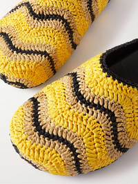 Marni’s Creative Director Francesco Risso champions craftsmanship, so a collaboration with colourful LA-label No Vacancy Inn is a perfect match. These mules have been crafted in Italy from raffia that's hand-woven into stripes and set on a comfortable fussbet sole. They’re the easiest way to make a casual outfit stand out. Size & Fit - Fits true to size. Take your normal size - Only available in full sizes, go up to the nearest whole size if you take a half size - European sizing Details & Care - Yellow, beige and black raffia