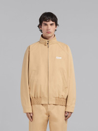 Bomber jacket made from bio cotton gabardine. Oversized fit with raglan sleeves. Buttoned stand collar, concealed zip closure and elasticated hem. Finished with slant pockets and a gummy Marni patch on the chest. Made in Italy. DETAILS FIT The model is 6' 1". The model is wearing size 48 IT. COMPOSITION Primary Fabric: 100% Cotton Woven - Lining: 100% Cupro Woven