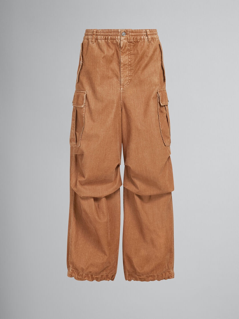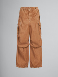 Loose-fit cargo pants made from dyed flock denim. Low rise with drawstring waist and cuffs. Topped with utility pockets on the sides. Made in Italy DETAILS FIT The model is 6' 2". The model is wearing size 32 IT. COMPOSITION Primary Fabric: 100% Cotton Woven
