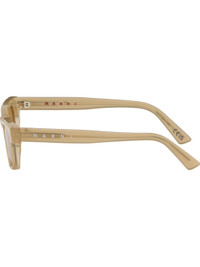 Handcrafted rectangular transparent acetate-frame sunglasses. · Brown lenses · Integrated nose pads · Inset logo at temples · Exposed core wires · Includes pouch · Size: 54.20 145 Part of the Marni x RETROSUPERFUTURE collaboration. Supplier color: Kobicha Acetate. Made in Italy 261379M134027
