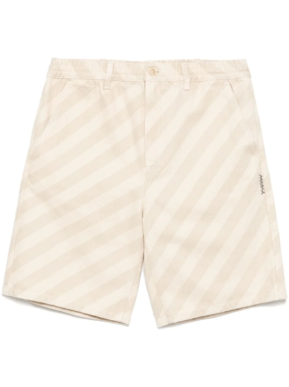 striped denim shorts Highlights - Bone white - Front button and zip fastening - Elasticated waistband with internal drawstring - Belt loops - Two side inset pockets Made in Italy Composition Cotton 100% SIZE & FIT Model measurements Height 6 ft 2 in(1.87 m) Bust/Chest 33.07 in(84 cm) Hips 35.43 in(90 cm) Waist 26.77 in(68 cm) FittingInformation Designed for a straight-leg fit, offering an unrestricted and comfortable fit over the leg Adjust this piece’s waistband to your preference using the drawstring Made from a midweight non-stretch fabric Washing instructions Hand Wash