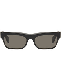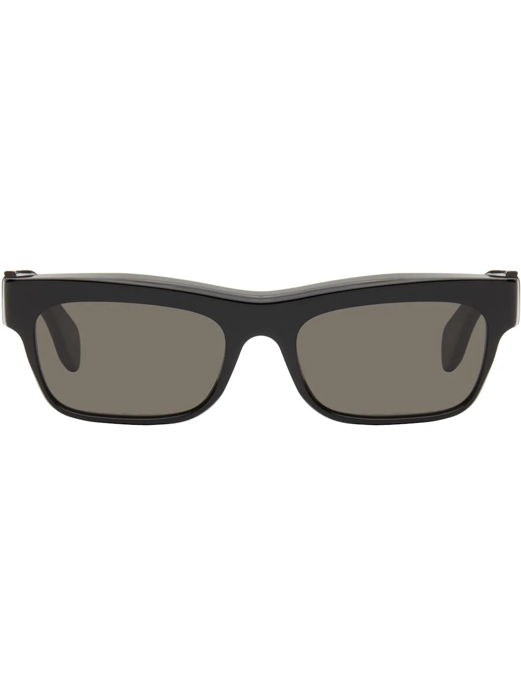 Handcrafted rectangular acetate-frame sunglasses in black. · Gray lenses · 100% UV protection, category 3 · Integrated nose pads · Logo etched at temples · Includes pouch · Size: 55.19 145 Supplier color: Black Acetate. Made in Italy 252379M134025
