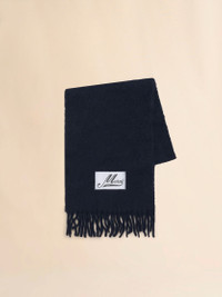NAVY BRUSHED ALPACA SCARF WITH FRINGES