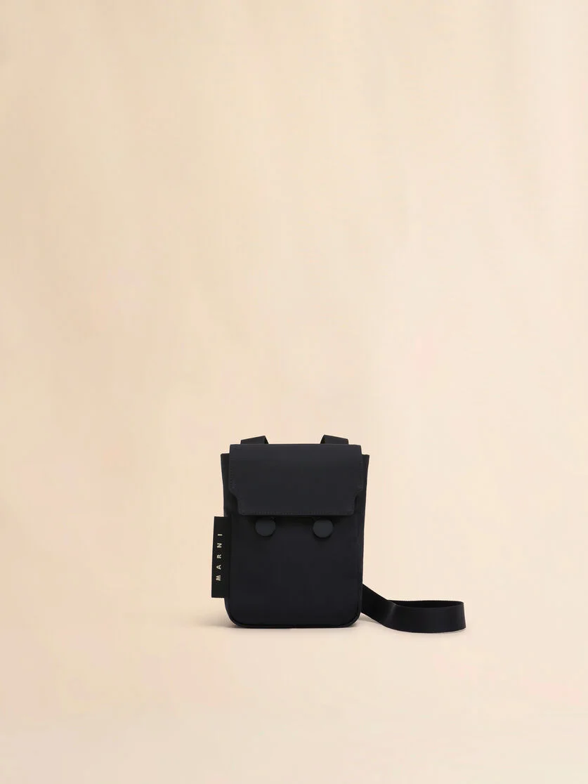 Crossbody iphone holder. Front flap with magnetic closure and engraved Marni lettering. Adjustable grosgrain strap. Back zip pocket. Side Marni label. MODEL TEMI0021A0P818400N99