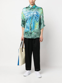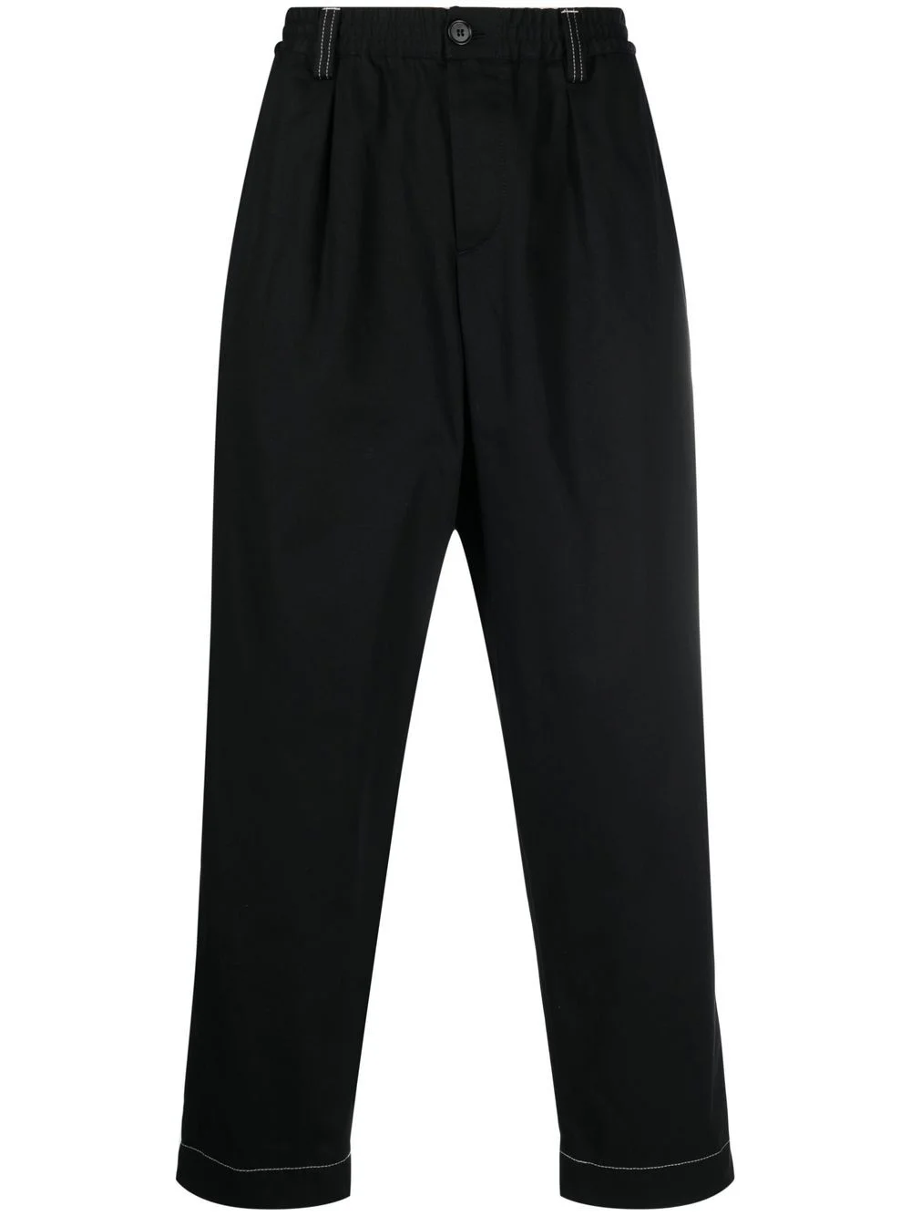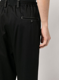 contrast-stitching trousers black cotton contrast stitching elasticated waistband belt loops two side slit pockets rear button-fastening jetted pocket straight leg Imported Composition Lining: Cotton 100% Outer: Cotton 100% SIZE & FIT Model measurements Height 6 ft 1 in(1.85 m) Bust/Chest 35.82 in(91 cm) Hips 37.79 in(96 cm) Waist 29.13 in(74 cm) FittingInformation This piece fits true to size. We recommend you get your regular size Designed for a slim fit at the waist and loose over the leg Made with a mid-weight non-stretch fabric Washing instructions Machine Wash