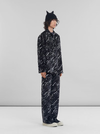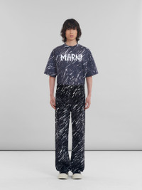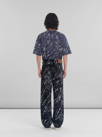 BLACK FLOCKED DENIM WIDE-LEG JEANS WITH CRAYON PRINT