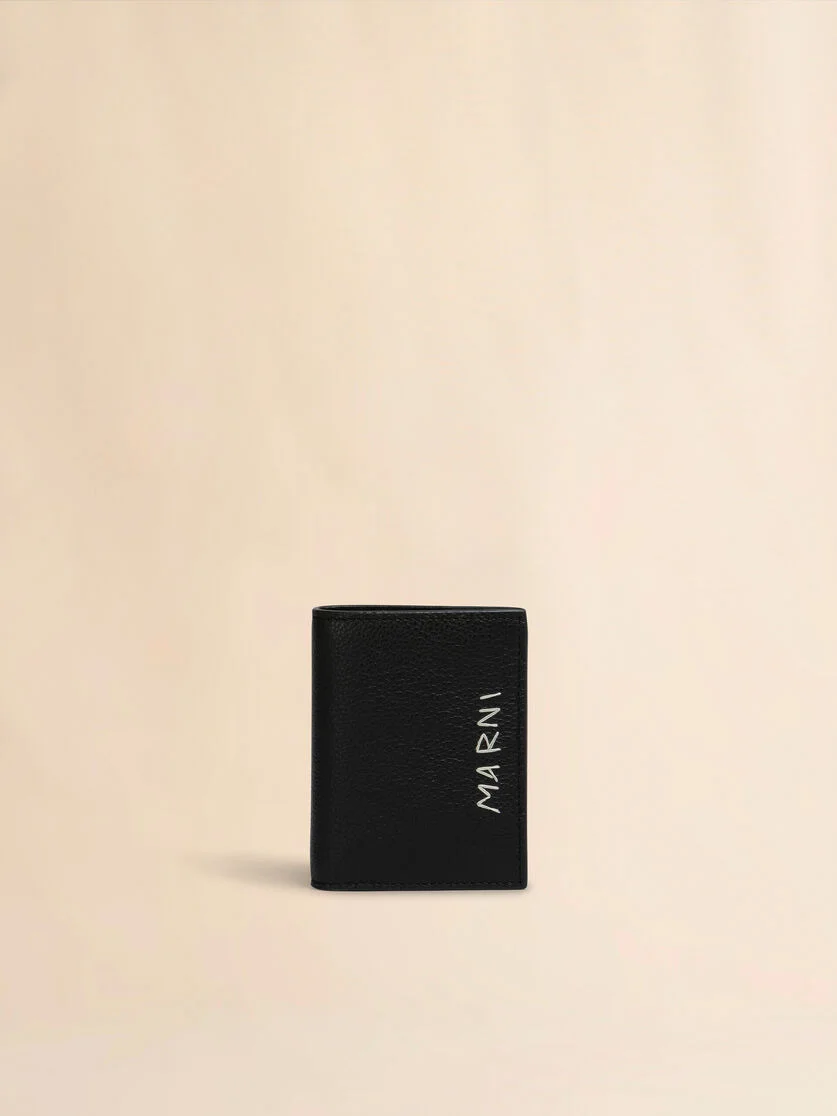 BLACK LEATHER BIFOLD WALLET WITH MARNI MENDING EMBROIDERY