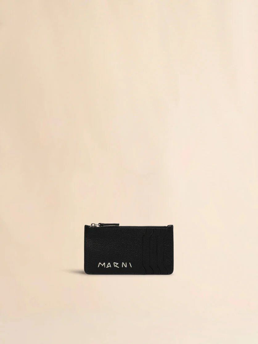 Card case made from milled calfskin leather. Four card slots. Central zip compartment. Hand-stitched Marni Mending logo on the front. Made in Italy MODEL PFMI0103U1P653300N99 COMPOSITION Body: 100% Calf Leather - Application: 100% Polyester - Lining: 100% Ovine Leather - Lining: 100% Viscose-Rayon - Metallic Parts: 100% Brass - Metallic Parts: 100% Zama