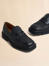Smooth calfskin leather penny loafer. Metal piercing detail on the saddle strap. Leather insole. Chunky rubber lug sole. Made in Italy MODEL MOMR005903P508800N99 COMPOSITION Upper: 100% Calf Leather - Lining: 100% Calf Leather - Inside: 100% Calf Leather - Sole: 100% Rubber