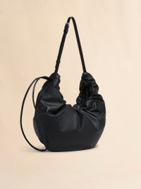 BLACK LEATHER SCRUNCHIE MEDIUM HOBO BAG