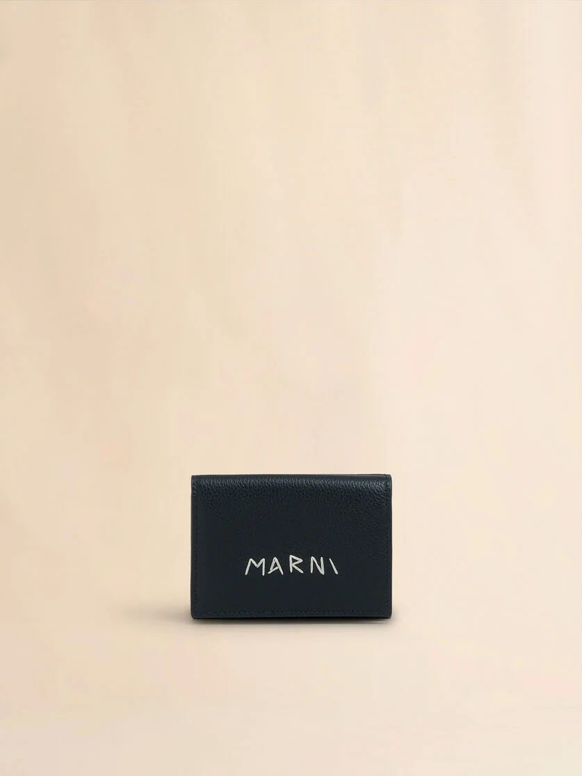BLACK LEATHER TRIFOLD WALLET WITH MARNI MENDING