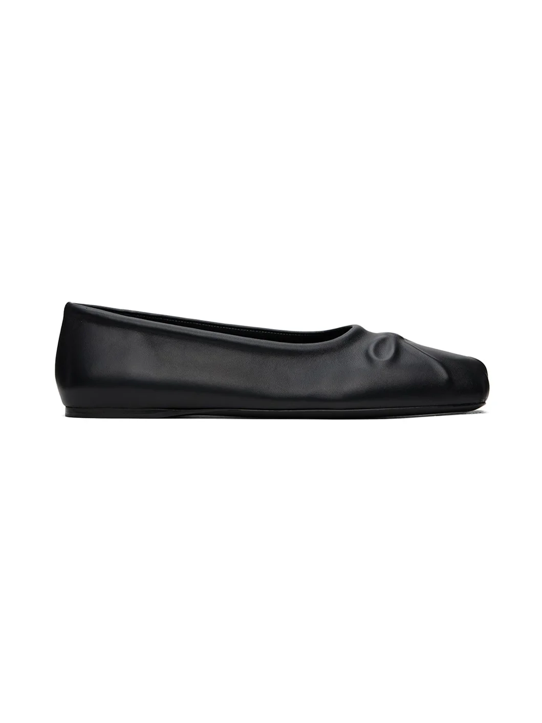 Nappa sheepskin ballerina flats in black. · Square toe · Hand-embossed bow accent at vamp · Nappa goatskin lining · Calfskin sole with rubber injection Supplier color: Black