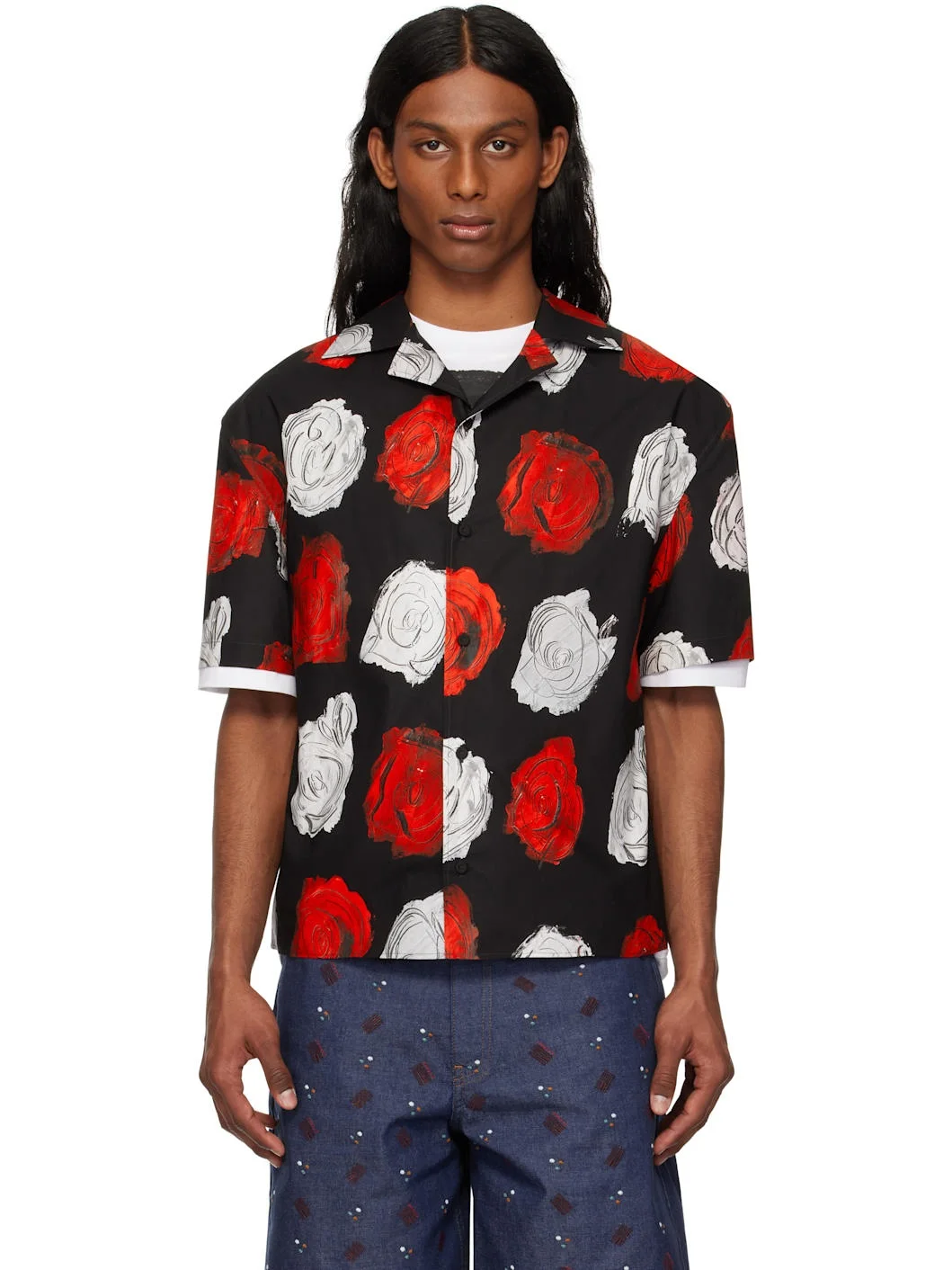 Cotton poplin shirt. Floral pattern printed throughout. · Open spread collar · Button closure Supplier color: Black 100% cotton. Made in Italy 251379M192053