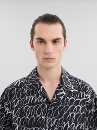 BLACK POPLIN BOWLING SHIRT WITH MARNI SCRIBBLE MOTIF