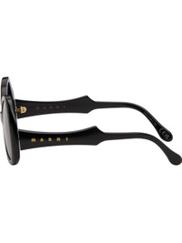Handcrafted oval acetate-frame sunglasses in black. · Gray Carl Zeiss lenses · Integrated nose pads · Logo stamp at temples · Includes pouch · Size: 55.21 145 Part of the Marni x RETROSUPERFUTURE collaboration. Supplier color: Black Acetate. Made in Italy 252379M134037