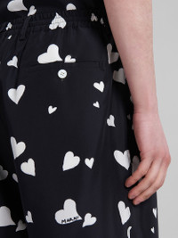 BLACK SILK SHORTS WITH BUNCH OF HEARTS PRINT