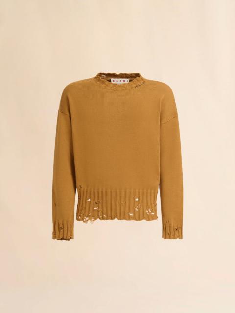 Long-sleeved crewneck sweater, boxy fit, worn ribbing, hand-embroidered MARNI logo on the front left side. Made in Italy MODEL GCMG0210A0UFC65200N99 COMPOSITION Primary Fabric: 100% Cotton Knit