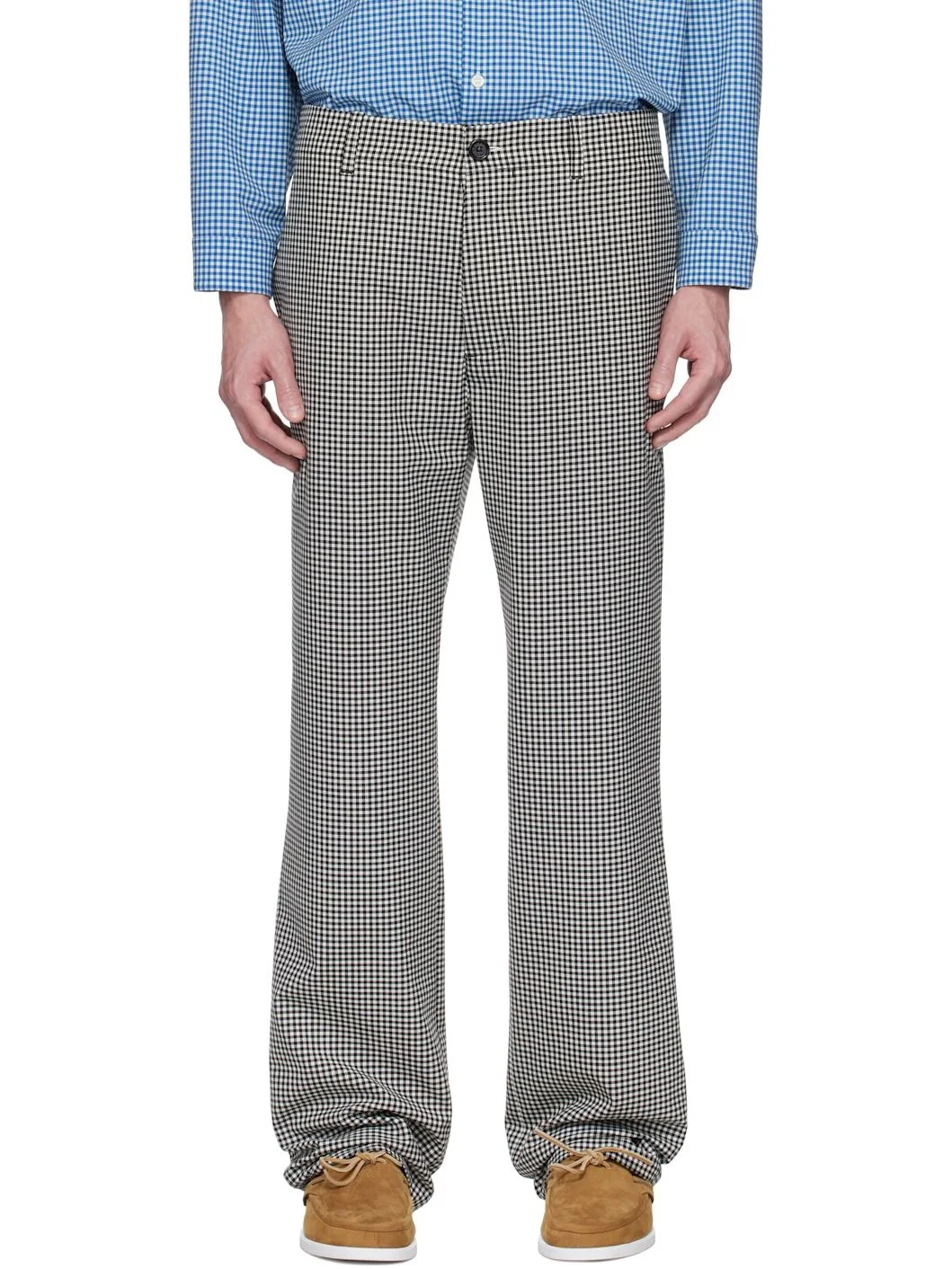 Straight-leg stretch polyester- and virgin wool-blend canvas trousers. Gingham pattern throughout. · Belt loops · Four-pocket styling · Button fy · Unlined · Logo-engraved horn hardware Supplier color: Black Body: 53% polyester, 43% virgin wool, 4% elastane. Lining: 100% cotton. Made in Italy 251379M191027