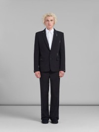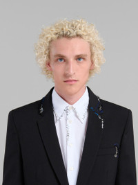 BLACK WOOL JACKET WITH BEAD MENDING