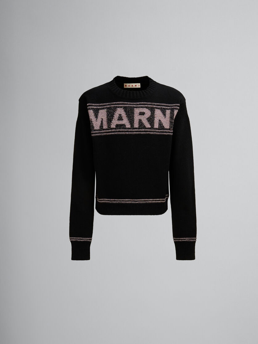 BLACK WOOL JUMPER WITH MAXI MARNI INTARSIA