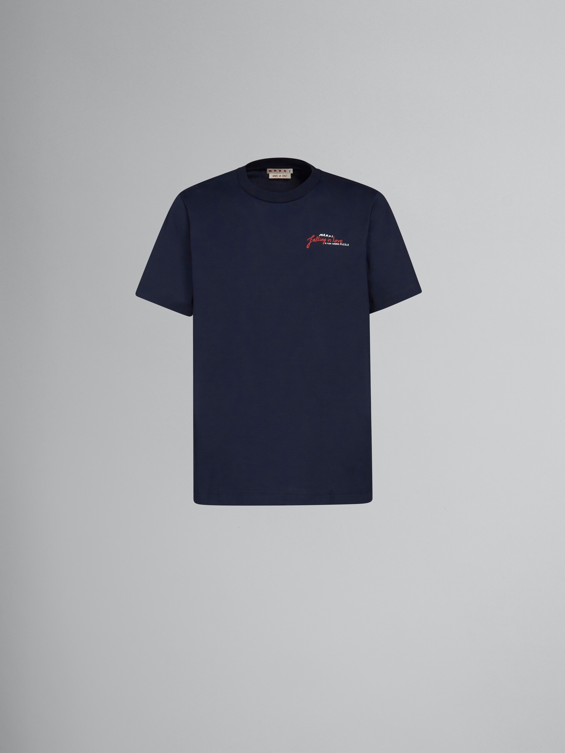 Bio cotton jersey T-shirt, embellished with a wordsearch heart print on the back and Marni Falling in Love lettering on the chest. Regular fit with crew neck. Made in Italy. DETAILS FIT The model is 6' 0.5". The model is wearing size 48 IT. COMPOSITION Primary Fabric: 100% Cotton Knit - Secondary Fabric: 100% Cotton Knit