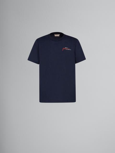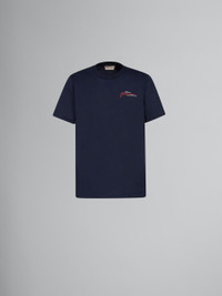 BLUE BIO COTTON T-SHIRT WITH WORDSEARCH PRINT