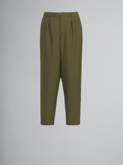 Tropical wool trousers. Darted front; drawstring waist. Slanted side pockets. Back welt pockets. Cropped. MODEL PUMU0017U0TW83900B99 COMPOSITION Primary Fabric: 100% Virgin Wool Woven - Lining: 69% Cotton 31% Polyamide-Nylon - Pocket Lining: 100% Cotton Woven