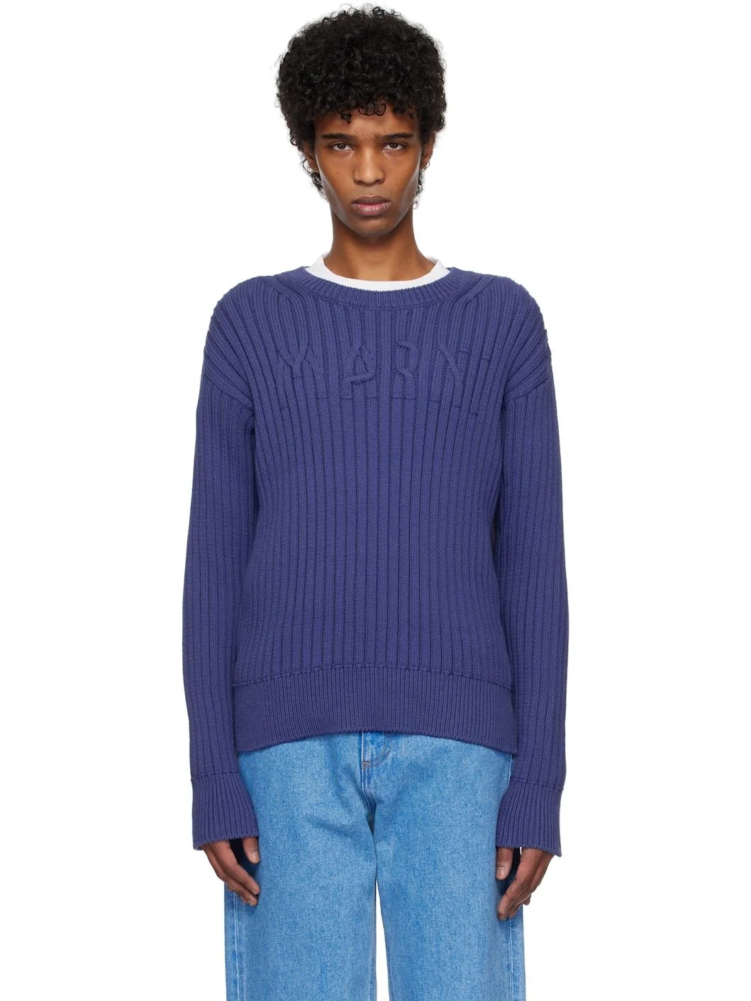 Rib-knit cotton-blend sweater. · Crewneck · Logo at chest · Dropped shoulders Supplier color: Blue sodalite 76% cotton, 24% polyamide. Made in Italy 251379M201004