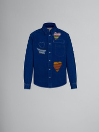 Long-sleeved shirt made from bio cotton denim with a bleached coated finish. Embellished with mohair and fabric heart and star patches. Chest pocket and button closure. Made in Italy. DETAILS FIT The model is 6' 0.5". The model is wearing size 48 IT. COMPOSITION Primary Fabric: 100% Cotton Woven