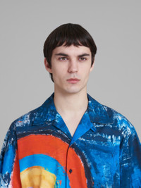 BLUE COTTON BOWLING SHIRT WITH RAINBOW PRINT
