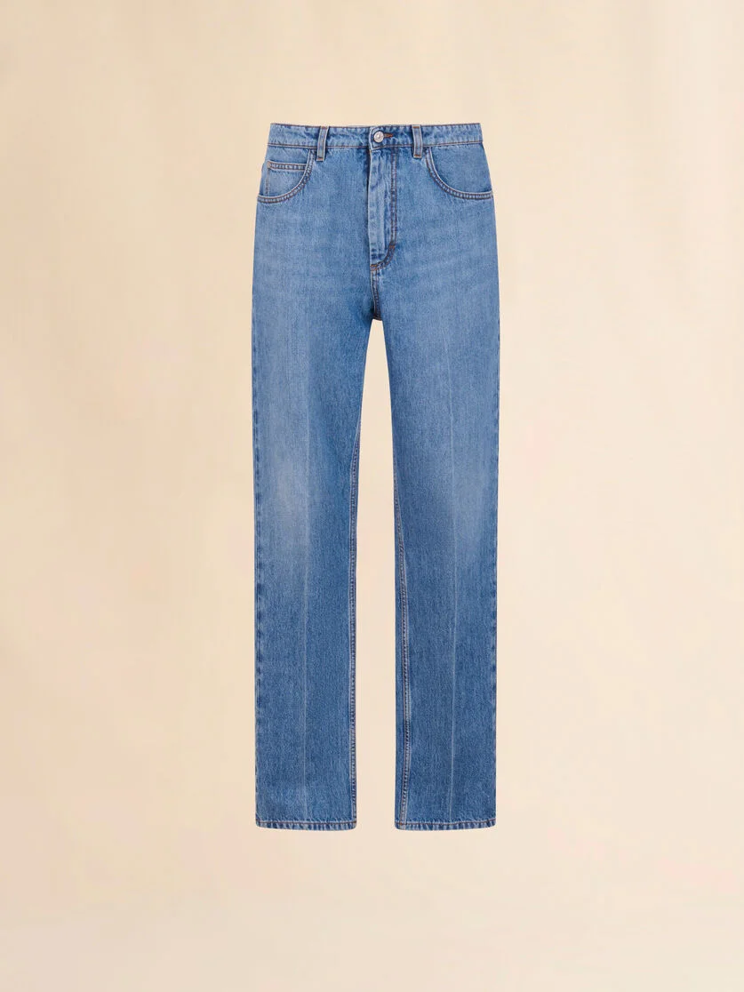 BLUE DENIM TROUSERS WITH STRAIGHT LEG