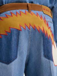 Mid-rise trousers made from washed bull denim. Classic 5-pocket silhouette with wide-leg fit and regular waist. Zipper-and-button fly. Finished with Marni logo label and patch created in collaboration with the artists Slawn and Soldier on the back. Made in Italy MODEL PUJU0320QSUSCY4400B96
